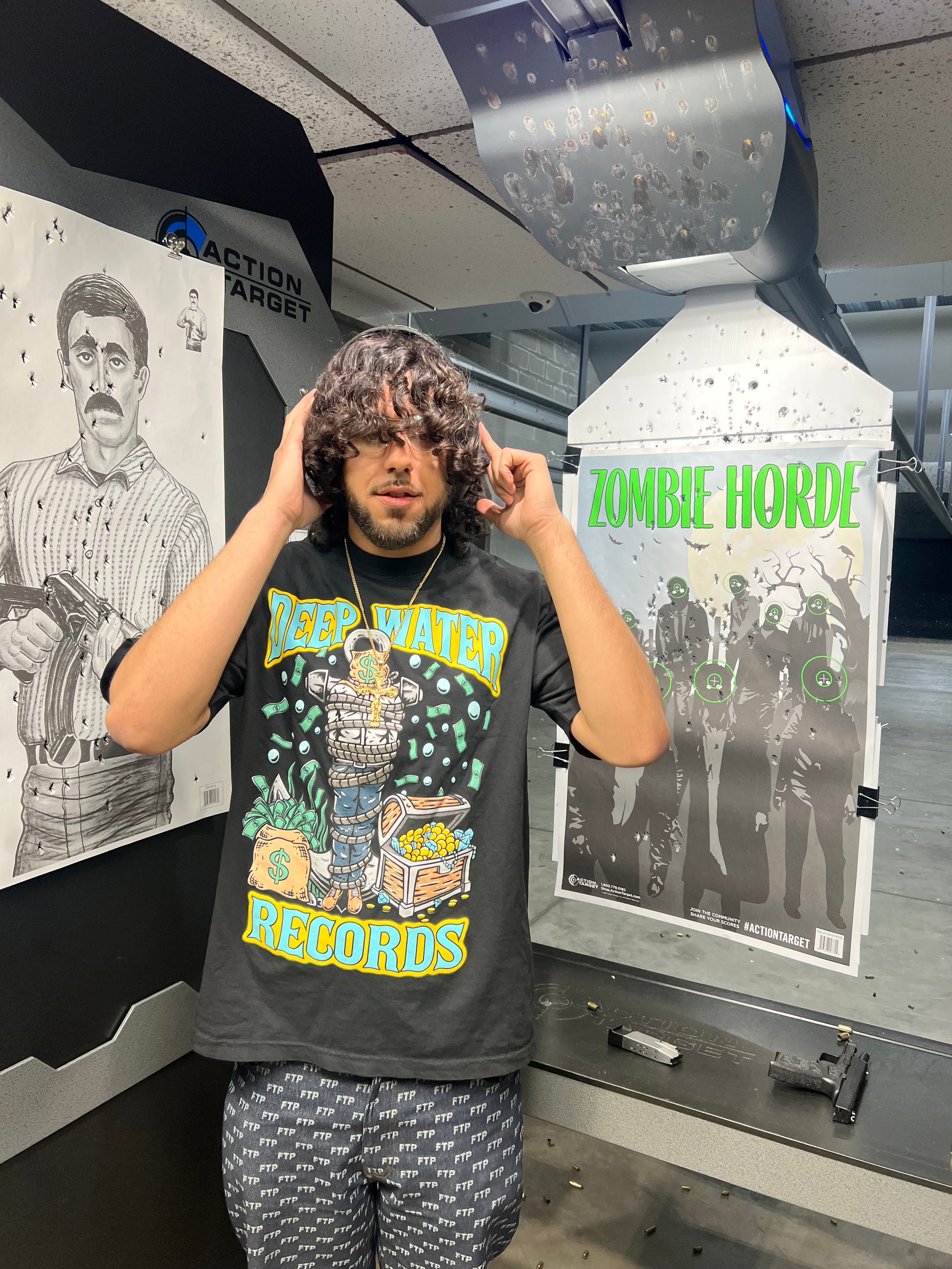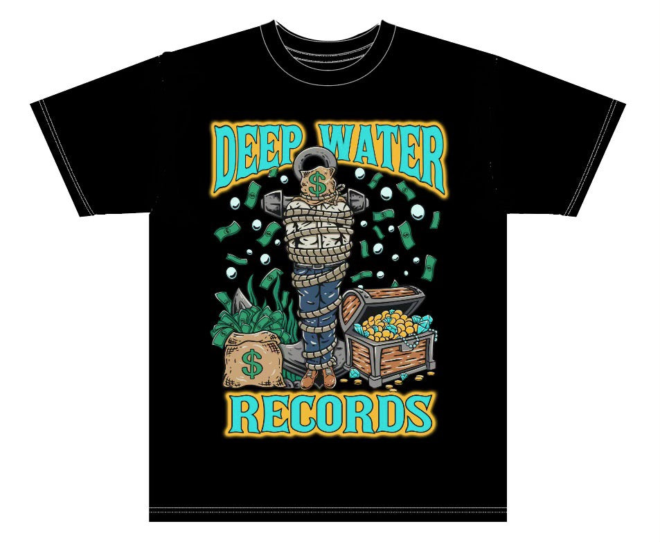 The Launch of the record label, Original Black version of the shirt used to help fund, advertise, and support "Deep Water Records" so that we can bring more Content, Visuals, Music and Events to life.